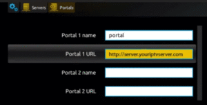 5 – Dans la ligne ‘Portal 1 Name’ entrez Player-IPTV et dans l’URL entrez l’URL qui vous reçu après votre commande chez LUXUS IPTV.